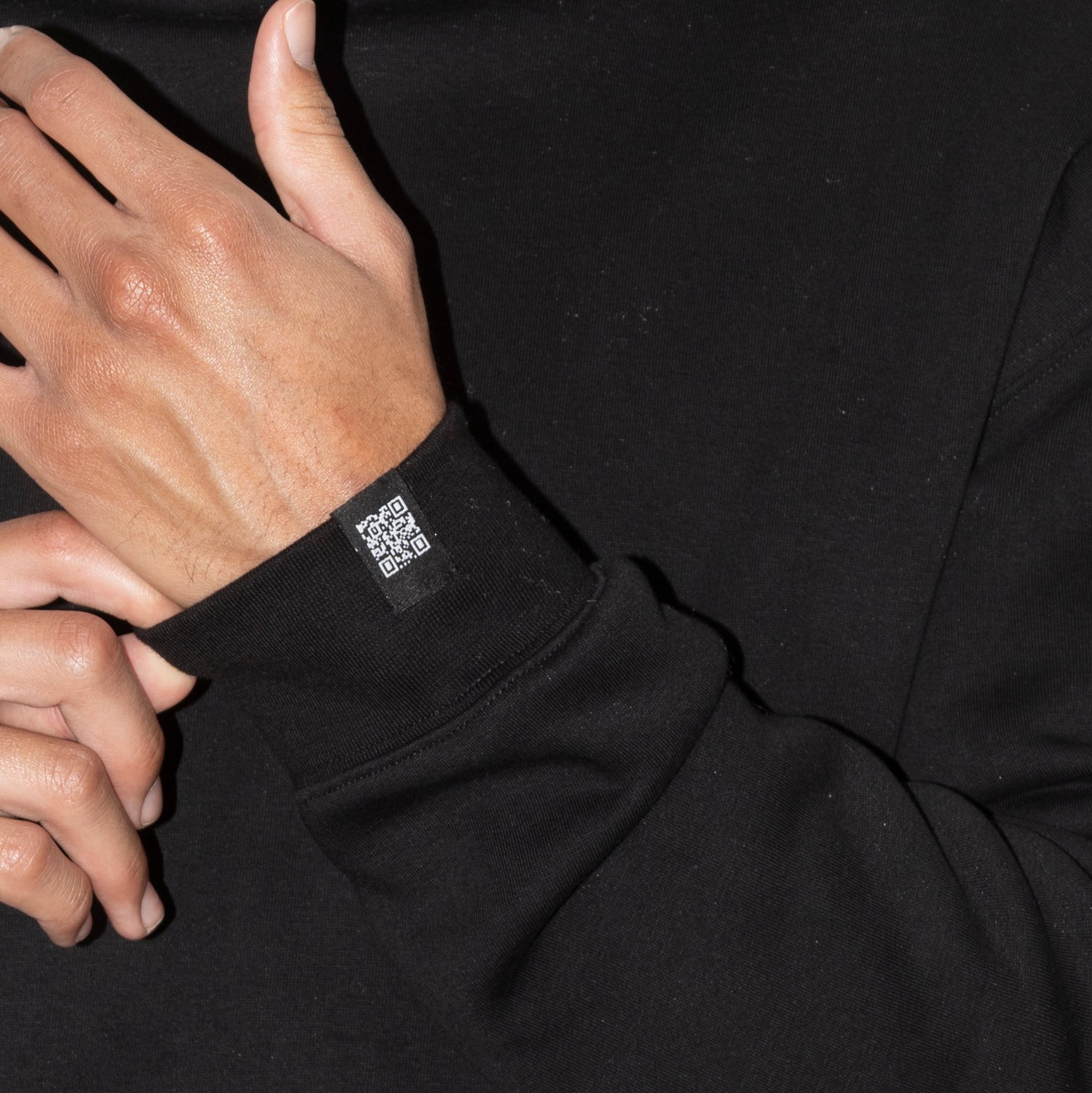 On the sleeve, a small scannable QR code label unlocks a hidden UNINSPIRED™ AR message - a quiet moment of reflection built into an otherwise minimal piece.